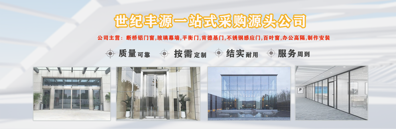 天津世紀(jì)豐源門窗有限公司從事斷橋鋁門窗,玻璃幕墻,平衡門,肯德基門,不銹鋼感應(yīng)門,百葉窗,辦公高隔,制作安裝一站式訂制生產(chǎn)及配套服務(wù)等。 公司自成立以來,始終堅持以人才為本、誠信立業(yè)的經(jīng)營原則,薈萃業(yè)界精英,成熟的技術(shù)、管理方法及企業(yè)經(jīng)驗與國內(nèi)企業(yè)的具體實際相結(jié)合,為企業(yè)供給各個方面的解決方案,使企業(yè)在激烈的市場競爭中始終堅持競爭力,實現(xiàn)企業(yè)快速、穩(wěn)定地發(fā)展。 質(zhì)量好、服務(wù)好、才能信譽好,公司已在諸多領(lǐng)域取得輝煌成績,愿意成為您可信賴的長期合作伙伴。 讓我們攜手同行,共同實現(xiàn)“讓普通老百姓都用得上高端門窗”...